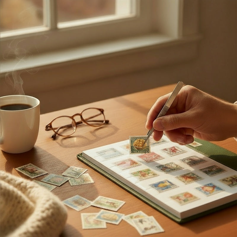 Klistermärken till frimärksamlande. Förpackning om 10 blad klistermärken.