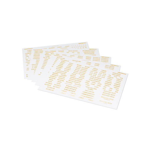 Landsetiketter med guldbokstäver, inklusive ytterligare etiketter, 6 sidor