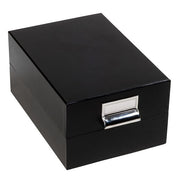 Svart arkivlåda för vykort, brev, registerkort, uppsättningar med mynt, sedlar och mycket mer upp till formatet 170 x 120 mm (DIN C6). Flexibel inredning med 3 löstagbara avdelare. Den höga stabiliteten ger varaktigt skydd. Metallhandtag med etikettfönster för identifiering av innehåll. Modern design.Kapacitet: ca 700 vykort. Externt format: 180 x 126 x 270 mm