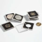 De identiska yttermåtten på de fyrkantiga kapslarna gör att mynt av olika storlekar kan lagras i ett enda samlarsystem. Fyrkantiga myntkapslar tillverkade av högkvalitativ, reptålig plast. Säker men ändå lättöppnad låsning. Kapslar inkl. precis passform, svart insats för alla de vanligaste mynten med 14 - 41 mm diameter. Kapslar tillgängliga i mm steg. Kapselstorlek: 50 x 50 x 6,25 mm. För optimal förvaring rekommenderar vi vår kollektion av tillbehör: presentfodral, myntetuis, myntlådor och lådor.
